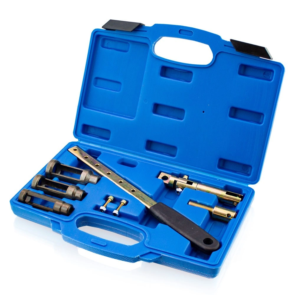 Extractor profesional pentru arcurile supapelor, compatibil cu motoare 8V, 12V și 16V, care facilitează service-ul fără demontarea chiulasei. Oferă înlocuirea rapidă a simeringurilor tijei supapei, compatibilitate largă cu distribuții OHC și construcție durabilă. Include carcasă practică din plastic și trei capete interschimbabile 20/26/35 mm.