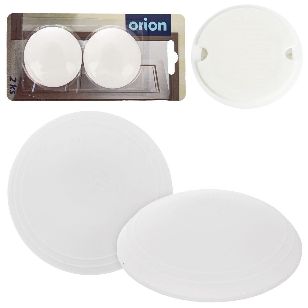 Set practic de două opritoare autoadezive pentru uși care protejează pereții și mânerele de lovituri și deteriorări. Au diametrul de 6 cm, înălțimea de 1,3 cm și sunt realizate din plastic de calitate, de culoare albă. Datorită stratului autoadeziv, montajul este rapid, fără găurire, iar opritoarele sunt stabile, rezistente și ușor de curățat.