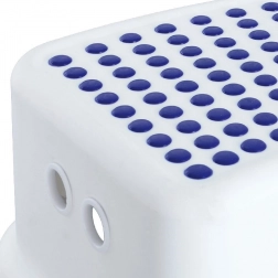 Practică și antiderapantă, treapta pentru copii și adulți ușurează accesul zilnic la chiuvetă, rafturi sau în duș. Oferă o construcție stabilă, dimensiuni compacte 26 × 36 × 13 cm și capacitate de încărcare până la 80 kg. Fabricată din plastic de calitate, alb cu elemente albastre și cu cauciuc antiderapant pe suprafața superioară și pe marginile inferioare.
