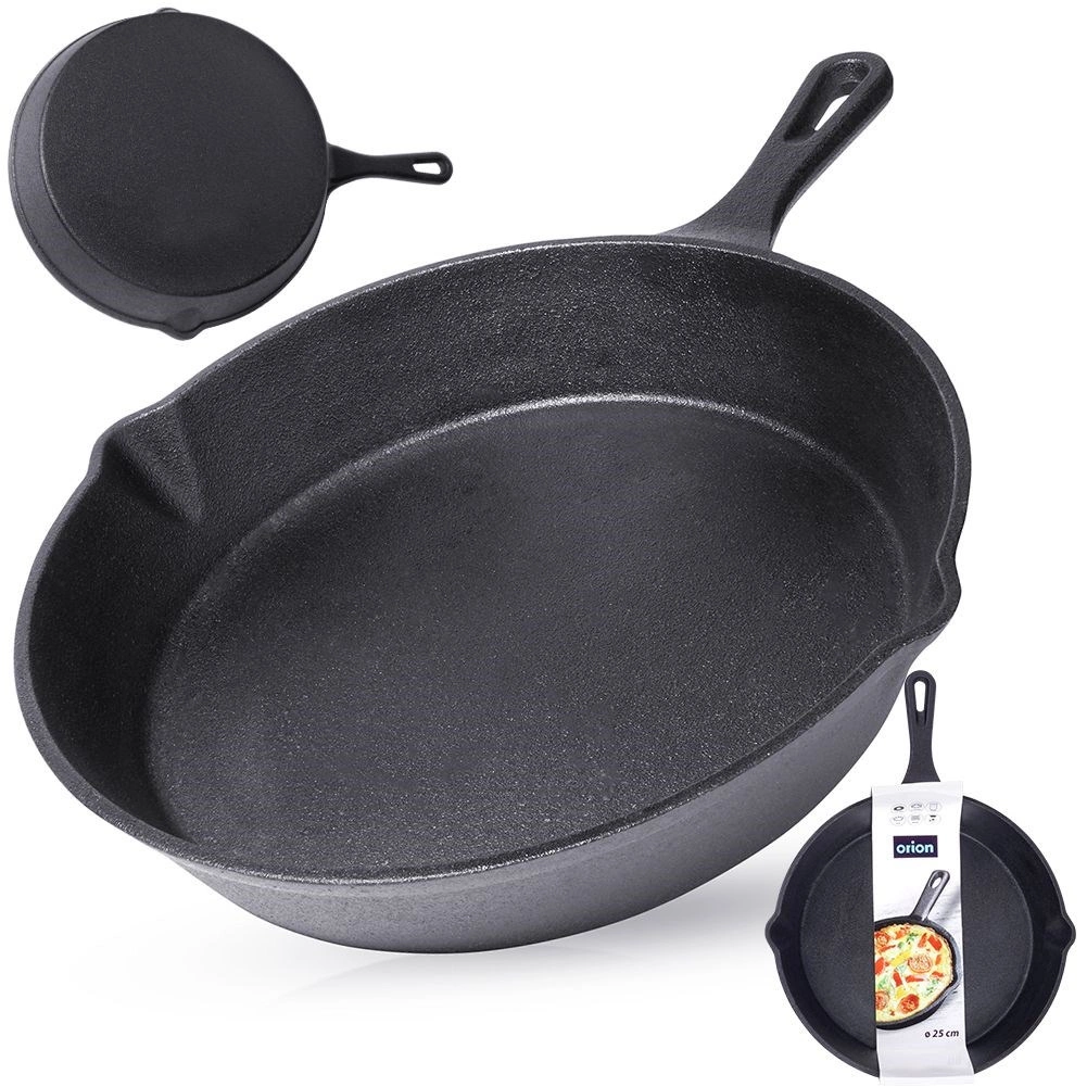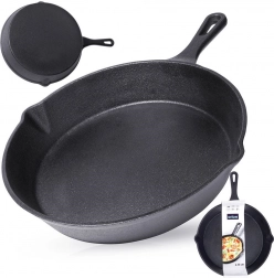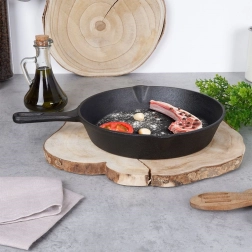 Tigaia robustă din fontă, cu diametrul de 25 cm, este ideală pentru prepararea cărnii, legumelor, cartofilor și produselor de panificație. Corpul masiv din fontă se încinge rapid și uniform și menține o temperatură stabilă, astfel încât preparatele rămân calde mai mult timp și oferă rezultate perfecte la rumenire, prăjire și coacere.