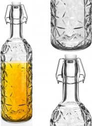 Sticlă elegantă în stil retro, cu volum de 750 ml, ideală pentru servirea și depozitarea apei, limonadei de casă, vinului, lichiorurilor și siropurilor de fructe. Închiderea tip clip cu clemă metalică și garnitură din silicon asigură etanșeitate perfectă, prelungește prospețimea băuturilor și previne vărsarea nedorită.