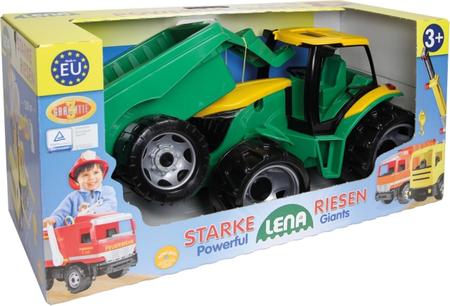 Tractorul este fabricat din plastic de înaltă calitate, care rezistă utilizării zilnice și intemperiilor. Remorca permite transportul unor obiecte mici, dezvoltând imaginația și motricitatea copiilor. Datorită capacității mari de încărcare, jucăria este stabilă și sigură.