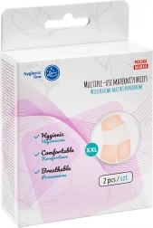 Chiloții postpartum reutilizabili, de culoare albă, oferă protecție igienică și respirabilitate maximă. Datorită elasticului fin în talie și la tivul picioarelor stau foarte bine, fiind totodată confortabili și blânzi cu pielea sensibilă. Mărimea XXL, circumferința șoldurilor aprox. 125 cm, pachetul conține 2 bucăți.