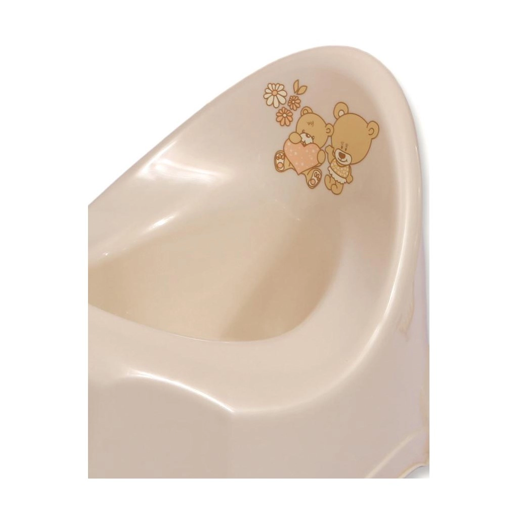 Ușurați antrenamentul la oliță cu olița muzicală în culoare bej, cu un ursuleț adorabil. După folosire, pornește automat o melodie, care motivează pozitiv copilul și transformă olița într-un ajutor amuzant. Finisajul antiderapant de pe partea inferioară asigură siguranță și stabilitate pe pardoseli netede.