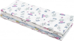 Set practic de scutece pentru copii NEW BABY, dimensiune 60×80 cm, conține 10 bucăți de scutece de calitate, moi și absorbante, din 100% bumbac. Imprimeurile vesele fac mai plăcută îngrijirea zilnică a bebelușului, iar utilizarea universală este apreciată de orice mămică. Scutecele au o grosime de 115 g/m², fiind potrivite pentru înfășat, șters sau ca protecție. Marcă cehă.