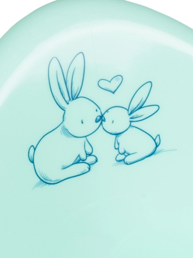 Olița pentru copii Bunny, în culoare mentă, cu imagini cu iepurași, oferă ședere confortabilă, spătar înalt și scaun larg. Este ușoară și compactă, ideală pentru utilizarea zilnică și pentru călătorii. Motivul vesel cu iepurași atrage copiii și le face mai plăcut antrenamentul la oliță.