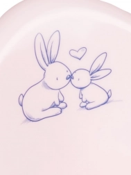 Părinții vor aprecia manevrarea ușoară – olița este ușoară, compactă și potrivită pentru orice baie. Designul pastel cu iepurași se potrivește atât în camera copilului, cât și într-o locuință modernă.