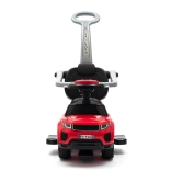 Pentru și mai multă distracție, pe volan se află un panou muzical cu 3 butoane cu melodii vesele și sunet de sirenă. Protecțiile laterale detașabile și suporturile inferioare pentru piciorușe oferă siguranță maximă în modul cu tija de ghidare. Sub șea se găsește o cutie practică pentru jucării mici și obiecte esențiale. Părinții vor aprecia mânerul înalt pentru ghidare confortabilă până când copilul capătă încredere.