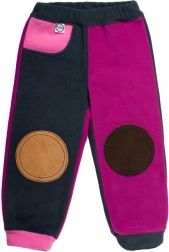 Pantaloni din fleece pentru copii, practici și călduroși, cu genunchiere din piele pentru rezistență sporită la joaca pe genunchi. Au buzunar adânc, talie elastică cu reglaj interior și manșete late pentru purtare confortabilă. Design original în carouri colorate, iar genunchierele în culori diferite pe fiecare genunchi fac din fiecare pereche o piesă unică.