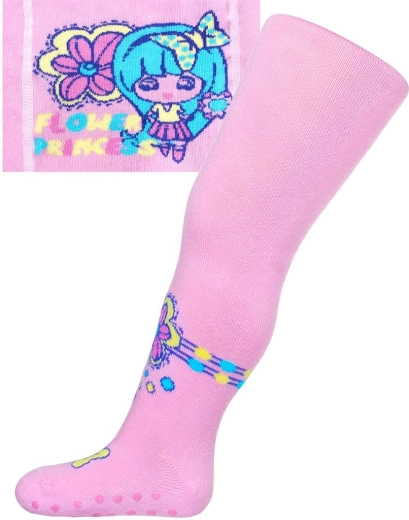 Dresuri drăgălașe pentru copii New Baby cu design roz deschis Flower Princess și talpă cu finisaj antiderapant ABS. Oferă confort la purtare, material rezistent care își păstrează forma și nu lasă culoare, precum și o imagine veselă pe partea din spate, care va încânta orice mică prințesă.
