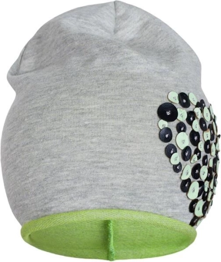 Căciulița NEW BABY, stilată și confortabilă, este o alegere excelentă pentru perioadele de tranziție. Bumbacul fin 100% asigură o purtare plăcută, evacuează căldura și permite pielii să respire. Drăguța aplicație cu inimioară oferă căciuliței gri‑verzi un aspect jucăuș, ușor de asortat cu ținutele de zi cu zi.