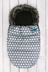 Datorită orificiilor universale pentru centuri de siguranță în 5 puncte, sacul se potrivește perfect majorității cărucioarelor și scaunelor auto. Buzunarul posterior practic oferă o fixare mai fermă, pentru a preveni alunecarea sacului. Designul modern cu steluțe și finisajele atent lucrate accentuează aspectul premium.