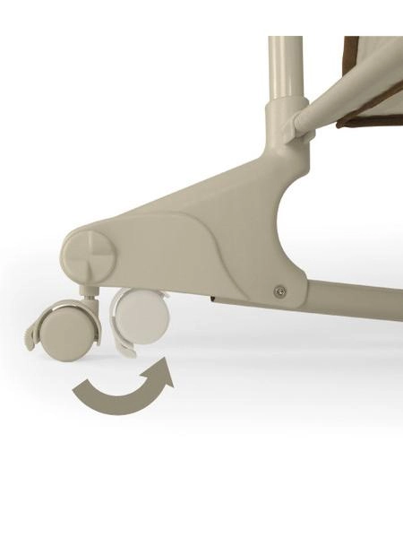 Datorită roților cu posibilitate de blocare, leagănul se mută ușor prin casă și se fixează în siguranță atunci când este necesar.