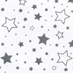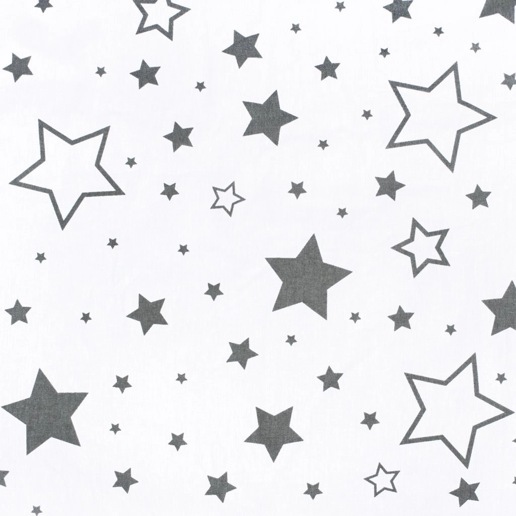 Combinația neutră alb-gri cu steluțe se potrivește în orice dormitor sau cameră de copii și se asortează ușor cu alte textile.
