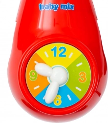 Figurinele pot fi detașate și folosite ca zornăitoare (înălțime aprox. 10 cm). Pe lateral se află un cadran colorat atrăgător, care invită copiii să atingă și să învârtă acele. Toate funcțiile – melodii, rotație, proiecție – pot fi pornite independent, pentru a crea atmosfera ideală pentru bebelușul dumneavoastră.
