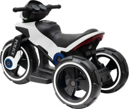 Motocicleta electrică pentru copii BABY MIX Police îmbină aspectul realist, confortul și siguranța. Datorită celor două motoare puternice și tracțiunii pe ambele roți din spate, copiii se bucură de o deplasare stabilă cu viteza de 2–4 km/h. Controlul este intuitiv – pedală pe scăriță pentru pornire și oprire automată la eliberare, direcția de mers se schimbă printr-un buton.
