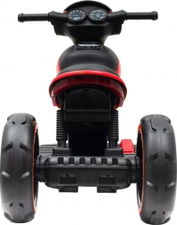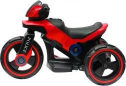 Motocicleta electrică pentru copii BABY MIX POLICE în culoare roșie oferă distracție sigură pentru copii de 3–7 ani. Dispune de motoare duble puternice 2×6V/24W, scaun lat și confortabil, roți mari din plastic și lumini LED. Datorită conexiunii USB/MP3, micii motocicliști pot reda muzica preferată, mersul înainte/înapoi se controlează prin buton, iar pedala de picior asigură pornire lină și frânare la eliberare.