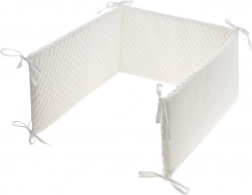 Apărătoarea moale, căptușită, cu legături, protejează de lovituri și împiedică strecurarea mânuțelor printre bare.