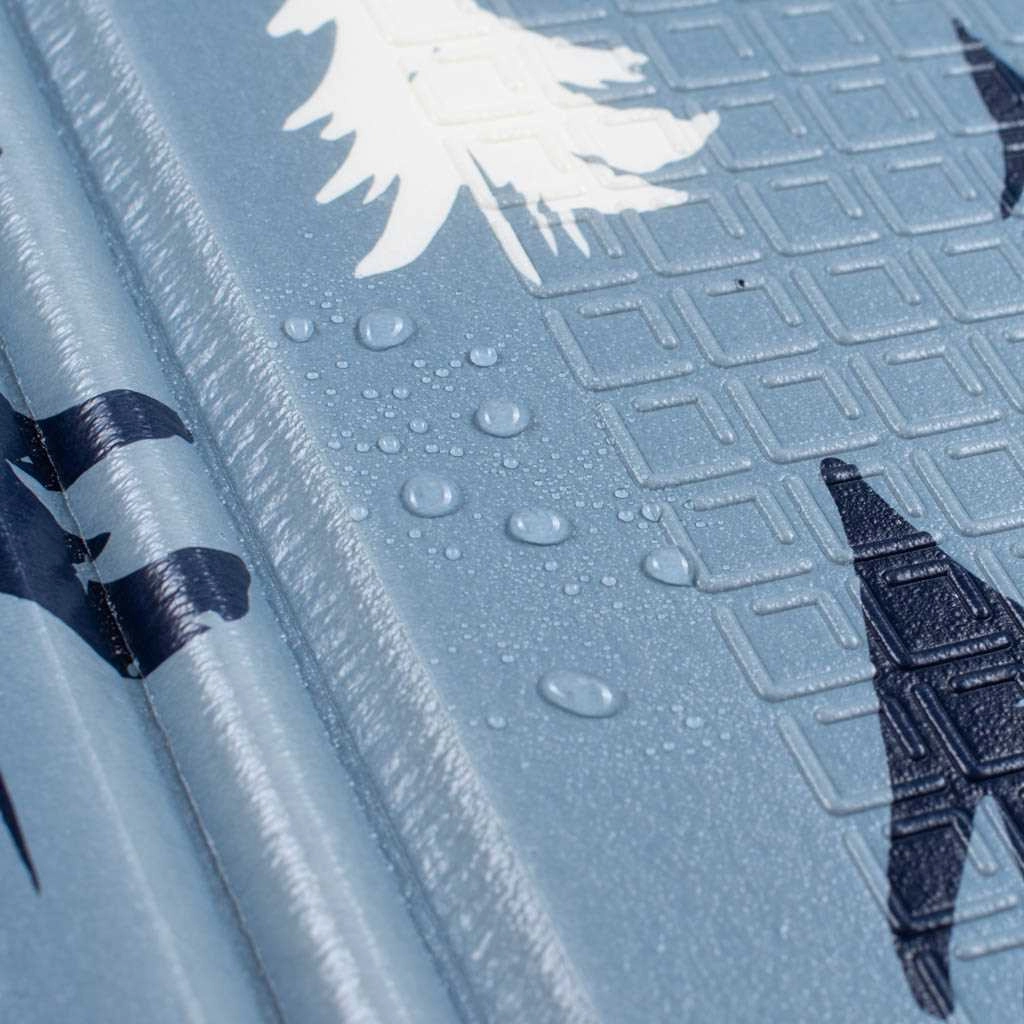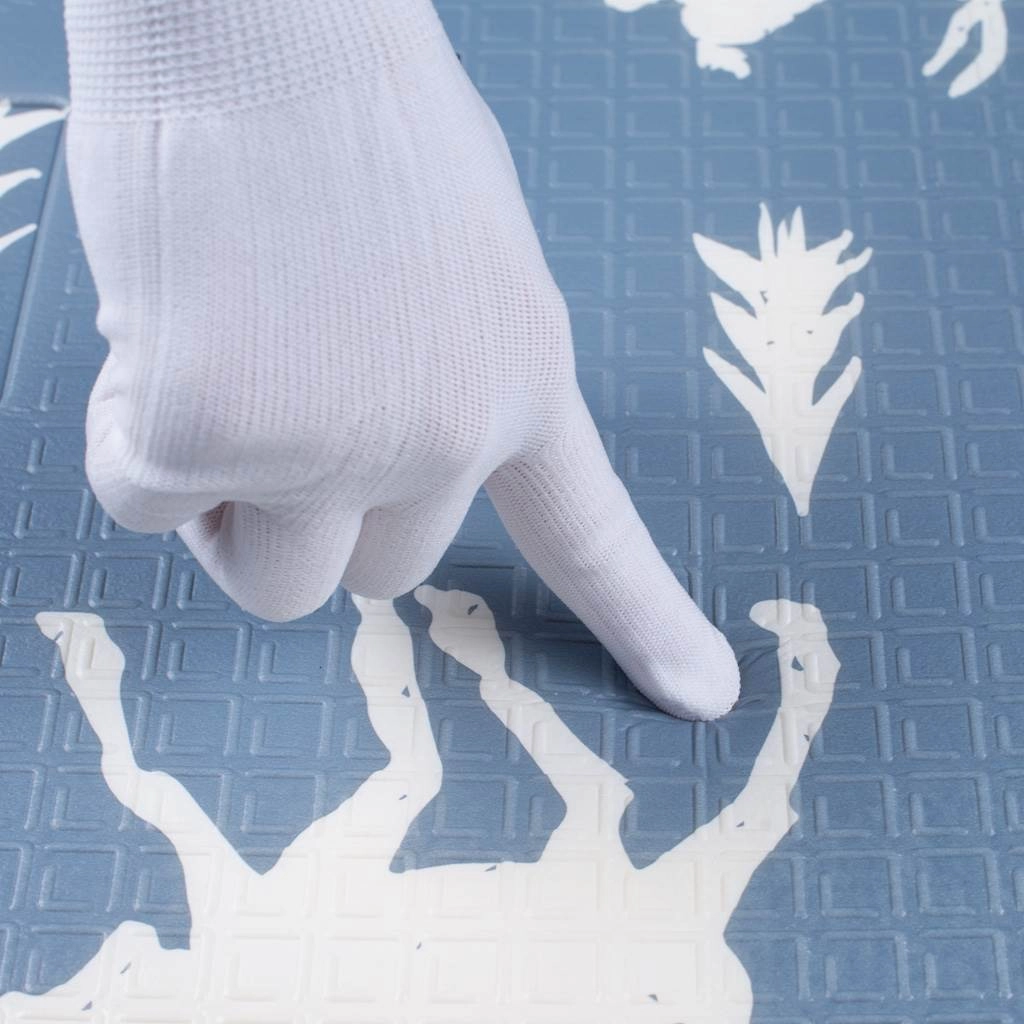 Suprafața antiderapantă special concepută minimizează riscul de alunecare, iar spuma XPE oferă o amortizare plăcută. Materialul este neabsorbant, impermeabil și se curăță ușor cu detergenți obișnuiți. Salteaua este certificată conform EN71 ca jucărie, nu conține ftalați, PAH și metale grele, respectând standarde stricte de siguranță.