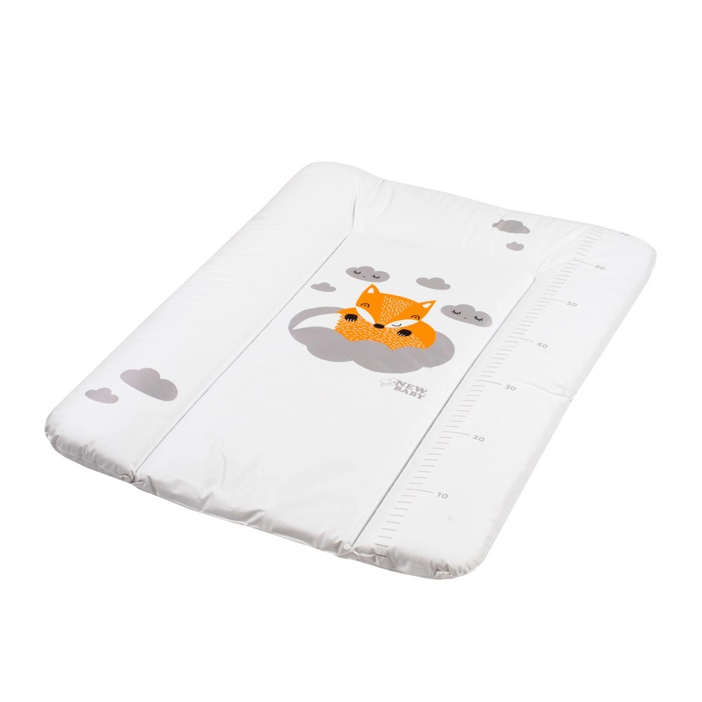 Practică și confortabilă, salteluța de înfășat New Baby cu motiv de vulpe oferă un loc moale și sigur pentru schimbările zilnice. Datorită marginilor laterale înălțate și suprafeței impermeabile, este ideală pentru comodă sau alte suprafețe plane. Dimensiunea de 70 × 50 cm și grosimea de aproximativ 4 cm asigură suficient spațiu și confort pentru bebeluș.