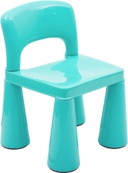 Practicul set pentru copii NEW BABY, în culoare mentă, combină o masă cu spațiu de depozitare și două scăunele ușoare. Blatul rotativ al mesei creează o suprafață compatibilă cu LEGO și DUPLO, iar sub blat se află un compartiment pentru jucării și materiale de creație. După îndepărtarea blatului, spațiul poate fi folosit ca mini-groapă cu nisip sau pentru jocuri cu apă.