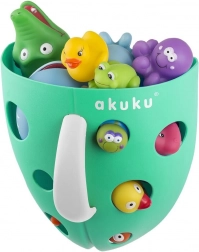 Coșul practic gri pentru jucării de baie AKUKU ajută la menținerea ordinii în jurul căzii sau dușului. Datorită fundului și pereților perforați, apa se scurge rapid, iar jucăriile și accesoriile se usucă ușor. Mânerul robust facilitează transportul, iar ventuzele permit fixarea sigură pe suprafețe netede, fără găurire.