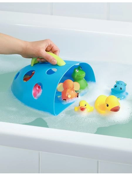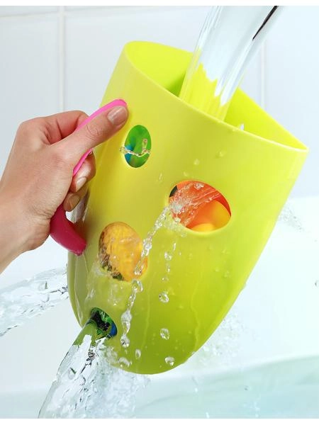 Pereții și fundul perforate asigură evacuarea apei și circulația aerului, astfel încât jucăriile se usucă rapid după baie.
