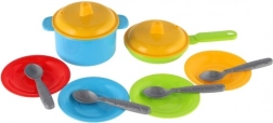 Setul de vase din plastic colorat oferă o oportunitate ideală pentru joaca copiilor și dezvoltarea creativității în bucătărie. Acest set este perfect pentru stimularea imaginației și dezvoltarea abilităților prin jocuri de rol.