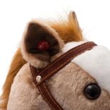- Experiență interactivă: la apăsarea urechilor, căluțul nechează, redă sunete de trap și mișcă botul.