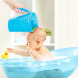 Datorită construcției ușoare și rezistente, recipientul este ușor de manevrat, suprafața netedă se curăță rapid, iar mânerul ergonomic se potrivește bine în mână. Forma practică cu gura de turnare ajută la direcționarea precisă a apei și la scurtarea timpului de clătire, lucru apreciat atât de copii, cât și de părinți.