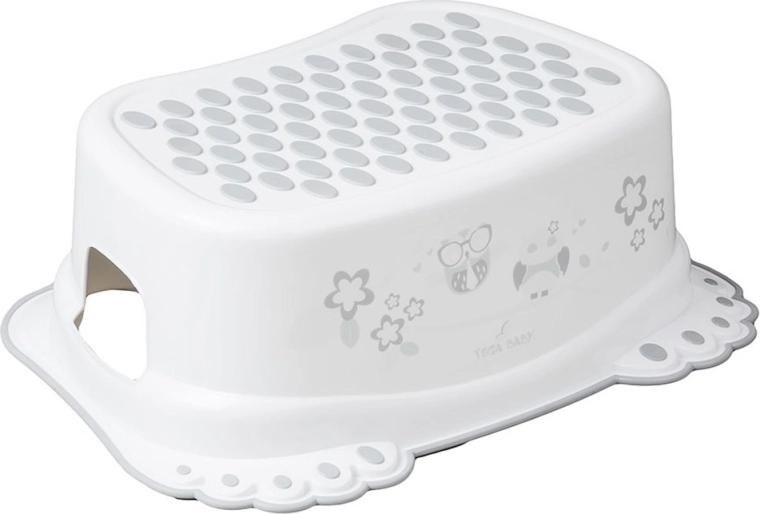 Treptele sigure și confortabile pentru copii susțin independența în baie. Datorită suprafeței antiderapante și construcției stabile, copiii pot ajunge ușor și în siguranță la lavoar sau la toaletă. Designul neutru alb, cu o bufniță veselă, se potrivește în orice baie.