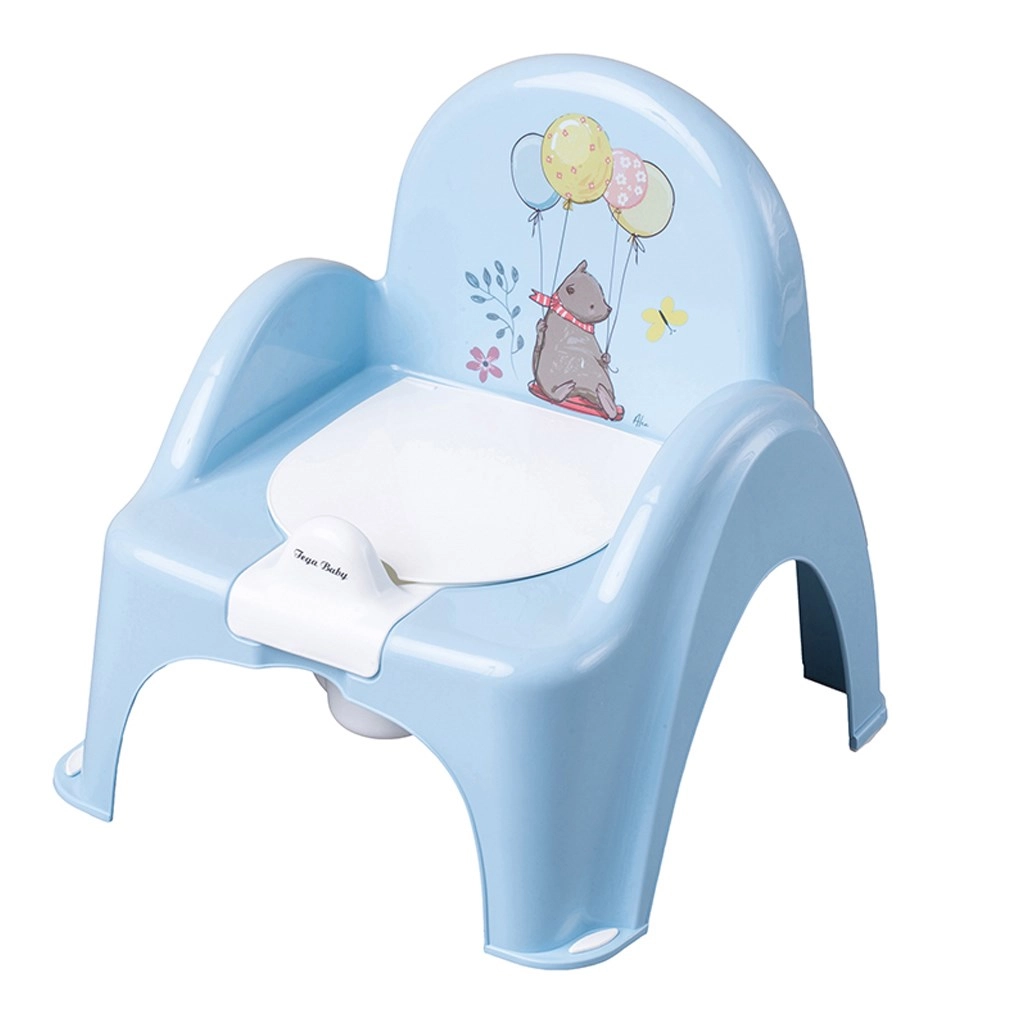 Oliță practică și distractivă pentru copii, sub forma unei mici toalete, cu imaginea unui ursuleț în culori pastelate. Oferă design modern, scaun larg și confortabil, spătar înalt, iar după utilizare redă o melodie care îi motivează pe copii să meargă singuri la oliță. Partea interioară este detasabilă pentru curățare ușoară, iar olița este ușoară și compactă pentru o manevrare facilă.