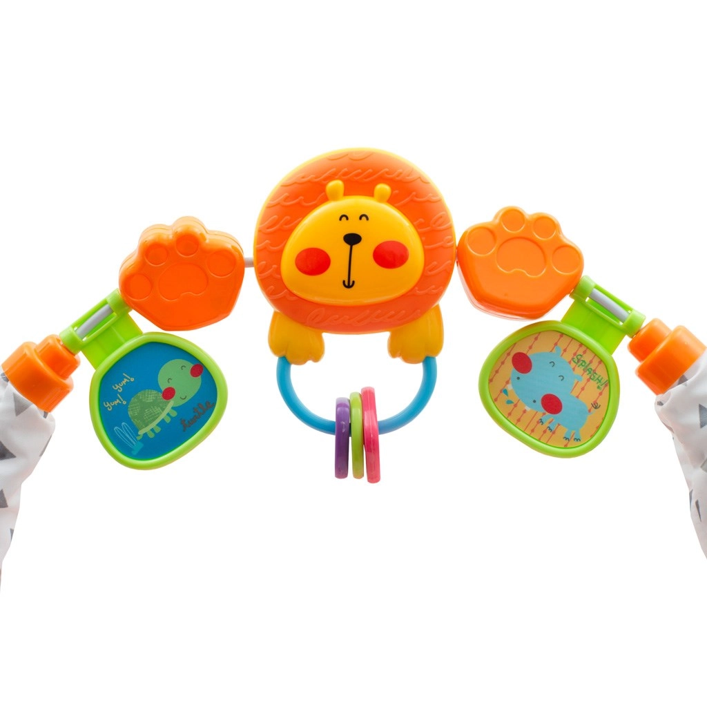 Mini-pianul detașabil cu 3 clape și jucăriile rotative cu animăluțe și mărgele dezvoltă simțurile și motricitatea fină. Distracție care motivează la mișcare.