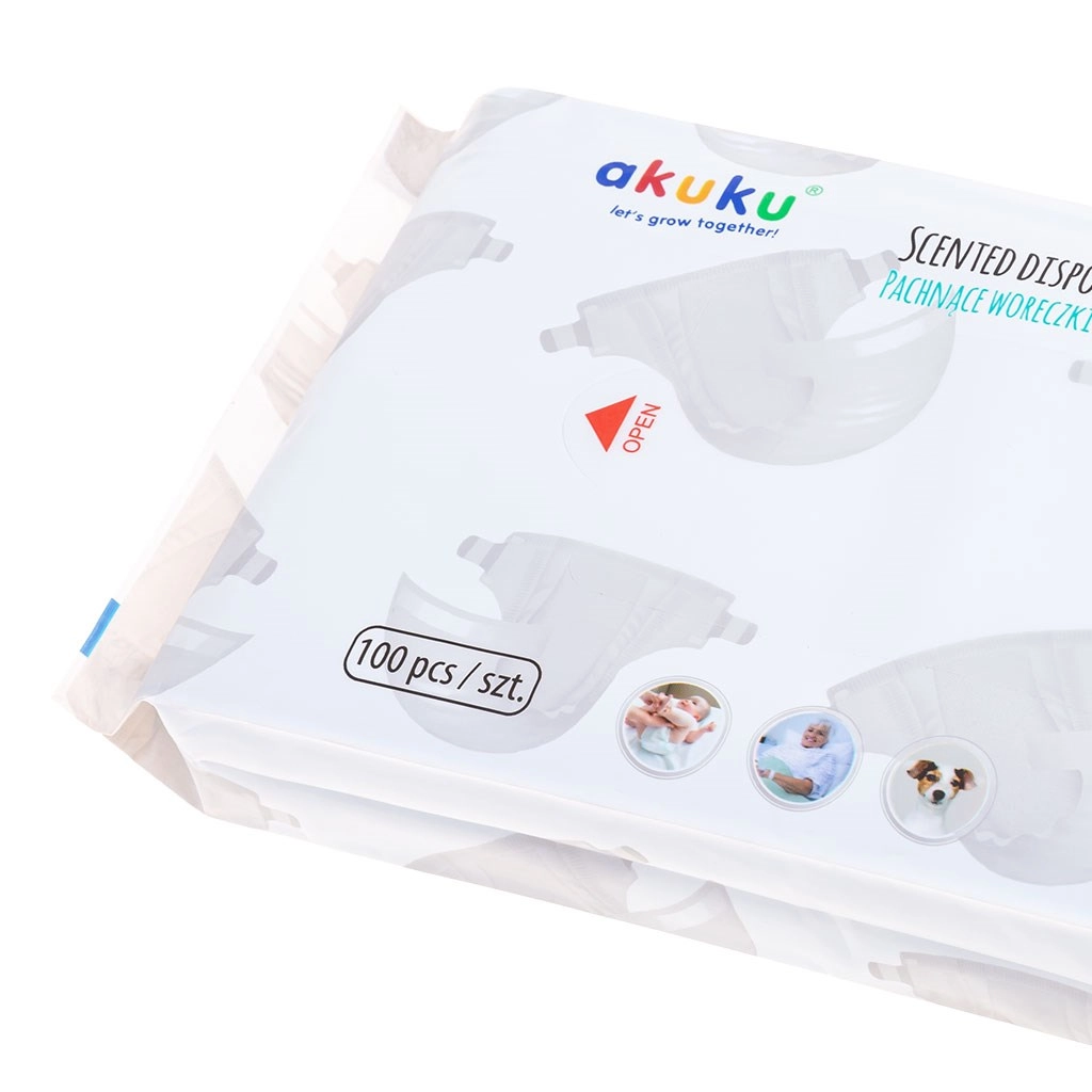 Păstrați curățenia și prospețimea la schimbarea scutecului cu pungile parfumate pentru scutece Akuku. Datorită parfumului plăcut, suprimă în mod fiabil mirosurile și ajută la menținerea igienei acasă, la plimbare și în timpul călătoriilor. Fiecare pungă oferă suficient spațiu pentru un scutec de orice mărime, împreună cu șervețelele sau dischetele demachiante folosite.