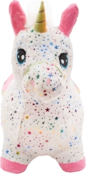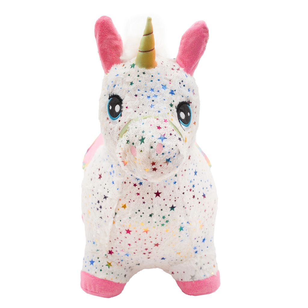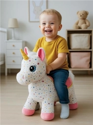 Unicornul din pluș săltăreț PLAYTO îmbină bucuria mișcării cu confortul. Corpul gonflabil este acoperit cu pluș fin, plăcut la atingere și numai bun de îmbrățișat. La apăsarea dintre urechi se aude sunet realist de căluț, care stimulează imaginația și jocul interactiv.