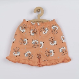 Pijamaua de vară New Baby Dream, într-o nuanță delicată de somon, este concepută pentru confort maxim și un aspect gingaș. Tricoul ușor, cu volănașe și imprimeu drăguț cu ursuleț pe norișor, este completat de pantalonii scurți cu imprimeu integral cu ursuleți și volănașe la tivul picioarelor. Datorită bumbacului 100%, pijamaua este respirabilă, blândă cu pielea sensibilă a copiilor și se potrivește perfect și ca ținută lejeră de casă pe timp de vară.