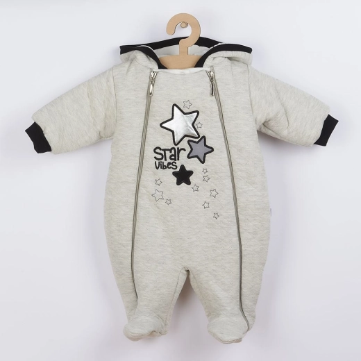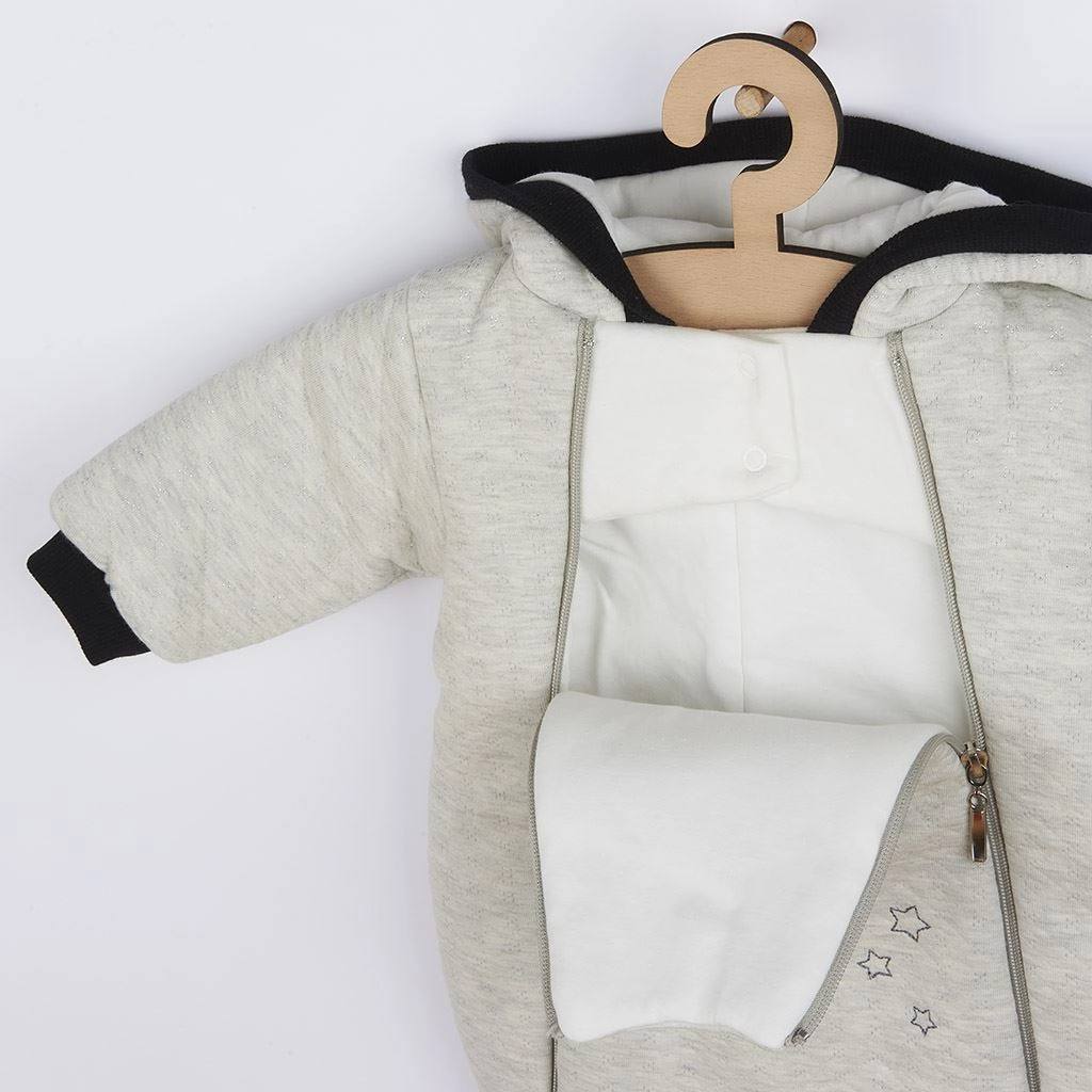 Combinezon de iarnă pentru bebeluși KOALA Star Vibes, stilat și practic, asigură căldură, confort și îmbrăcare ușoară. Două fermoare laterale grăbesc schimbarea hainelor și a scutecului, iar căptușeala din bumbac pe toată suprafața este plăcută pentru pielea sensibilă, în timp ce umplutura antialergică sporește căldura în zilele reci.