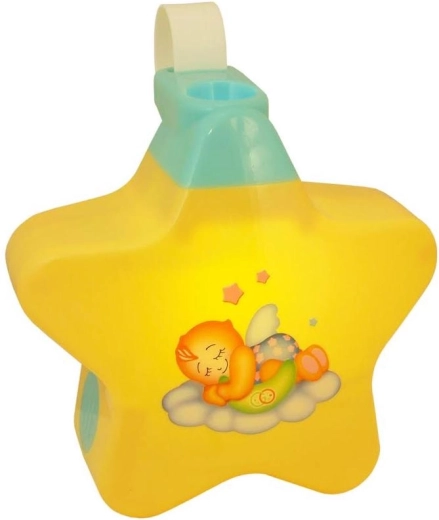 Controlul este intuitiv – butoanele separate permit pornirea muzicii și a proiecției separat sau împreună, în timp ce 2 trepte de volum ajustează sunetul la nevoile bebelușului. Mânerul practic și cureaua de prindere din plastic asigură fixarea ușoară pe pătuț sau leagăn.