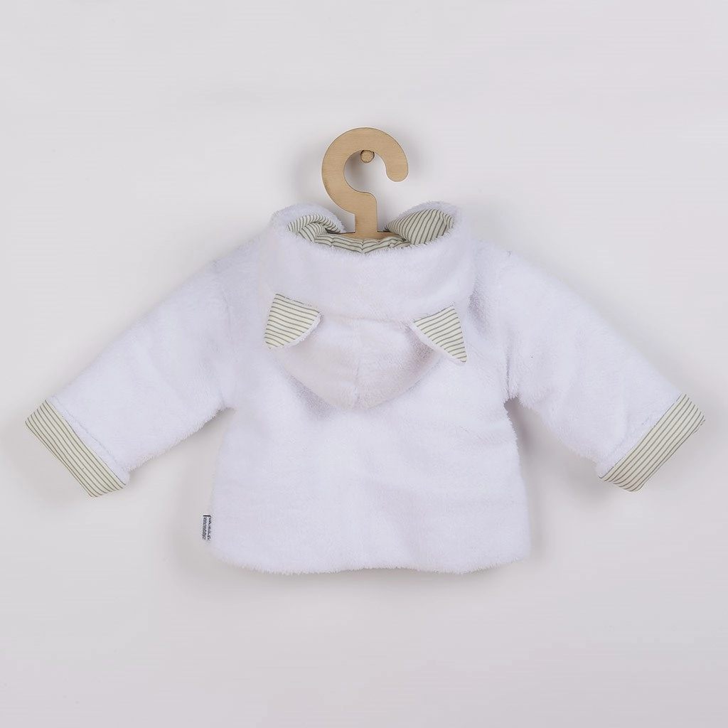 Paltonașul de iarnă luxos cu glugă din colecția NEW BABY Snowy a fost conceput pentru confortul și căldura maxime ale bebelușului. Materialul moale wellsoft încălzește plăcut, umplutura antialergică oferă izolare sigură, iar căptușeala din bumbac cu model dungat integral este delicată cu pielea copilului.