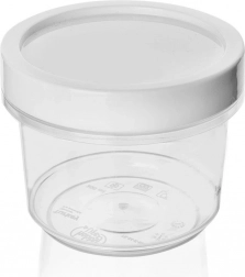 Recipient rotund, fiabil și universal, cu volum de 300 ml, cu capac alb și corp transparent, care permite verificarea ușoară a conținutului fără deschidere. Datorită garniturii de calitate, cutia este excepțional de etanșă și menține mâncarea proaspătă mai mult timp – fără riscul de vărsare în timpul transportului.