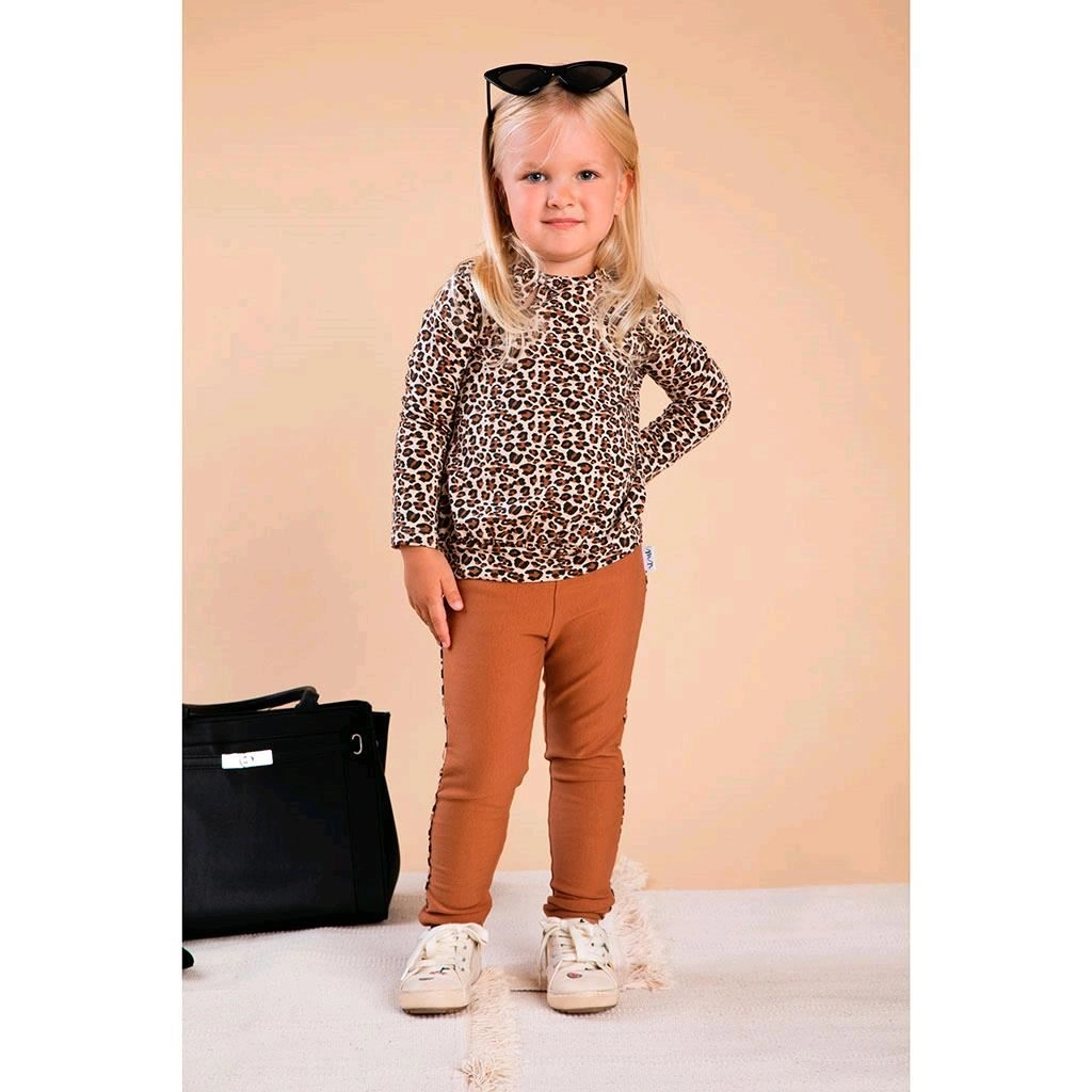 Tricou stilat pentru bebeluși Nicol Mia din 100% bumbac cu model leopard și o drăgălașă fundă sub gât. Datorită închiderii practice cu capse pe umăr, se îmbracă ușor chiar și la schimbarea scutecului. Marginea mai lată oferă tricoului confort și un aspect plăcut pentru purtarea de zi cu zi.