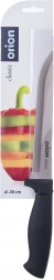 Cuțit de bucătărie fiabil pentru munca zilnică în bucătărie. Datorită lamei ascuțite din oțel inoxidabil, tăiați ușor și precis fructe, legume și carne, inclusiv bucăți mai tari. Mânerul ergonomic din plastic rezistent, de culoare neagră, asigură priză sigură și stabilă fără alunecare.