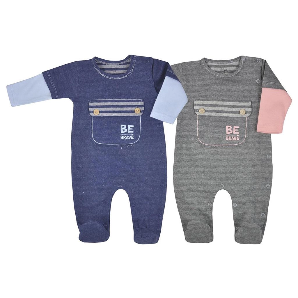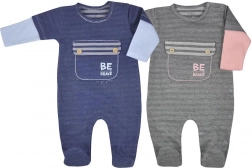 Salopetă confortabilă și foarte moale pentru bebeluși, din 100% bumbac, cu aspect modern melanj și motivul BE BRAVE. Închidere laterală practică cu capse pe toată lungimea, pe umăr și între piciorușe, pentru îmbrăcare și schimbare ușoară în fiecare zi. Stilul este completat de un buzunărel decorativ cu nasturi.