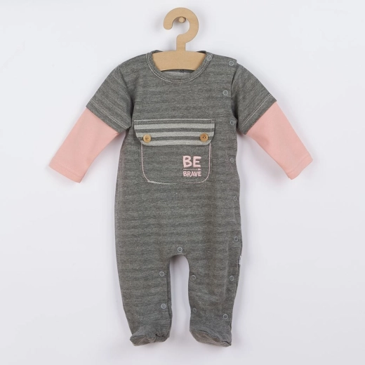 Koala Be Brave este o salopetă moale pentru bebeluși, creată pentru confort maxim și manevrare ușoară în îngrijirea zilnică. Datorită tricotului de bumbac de calitate, este respirabilă, delicată cu pielea copilului și potrivită pentru purtare întreaga zi. Combinația modernă gri-roz cu inscripția BE BRAVE adaugă ținutei stil.