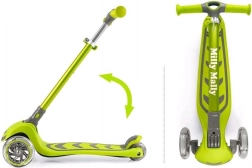 Trotineta Milly Mally Boogie este o alegere excelentă pentru copiii activi care iubesc mișcarea. Direcția bazată pe transferul echilibrului dezvoltă motricitatea și coordonarea, în timp ce cele trei roți (spate duble) oferă o stabilitate și siguranță sporite în timpul mersului. Roțile din față luminoase adaugă un plus de distracție fiecărei plimbări.
