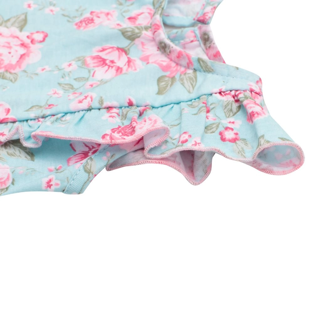 Rochiță de vară adorabilă din bumbac 100% moale de la NEW BABY, încântă prin imprimeul floral delicat cu trandafiri și mânecuțe cu volănașe. Datorită închiderii practice la gât, pe spate, se îmbracă ușor și este ideală pentru purtare zilnică în zilele călduroase.