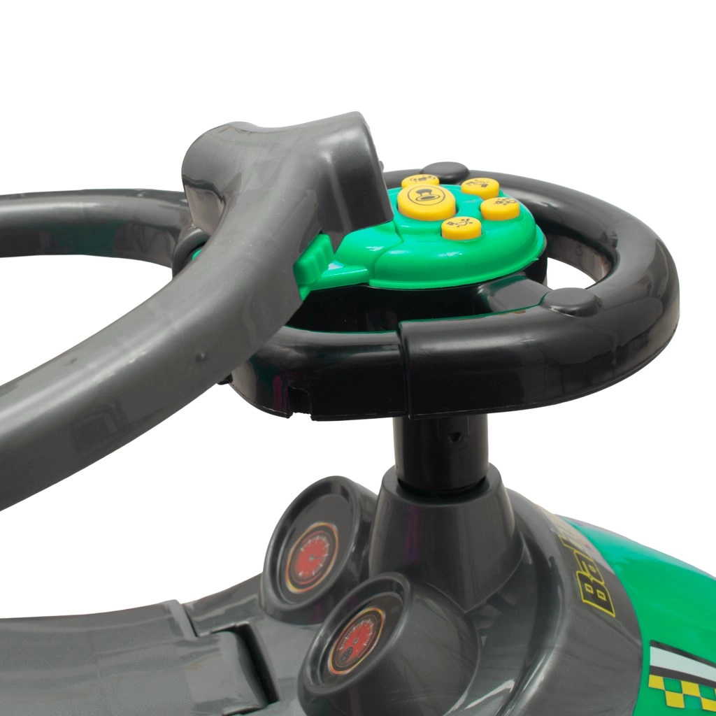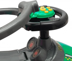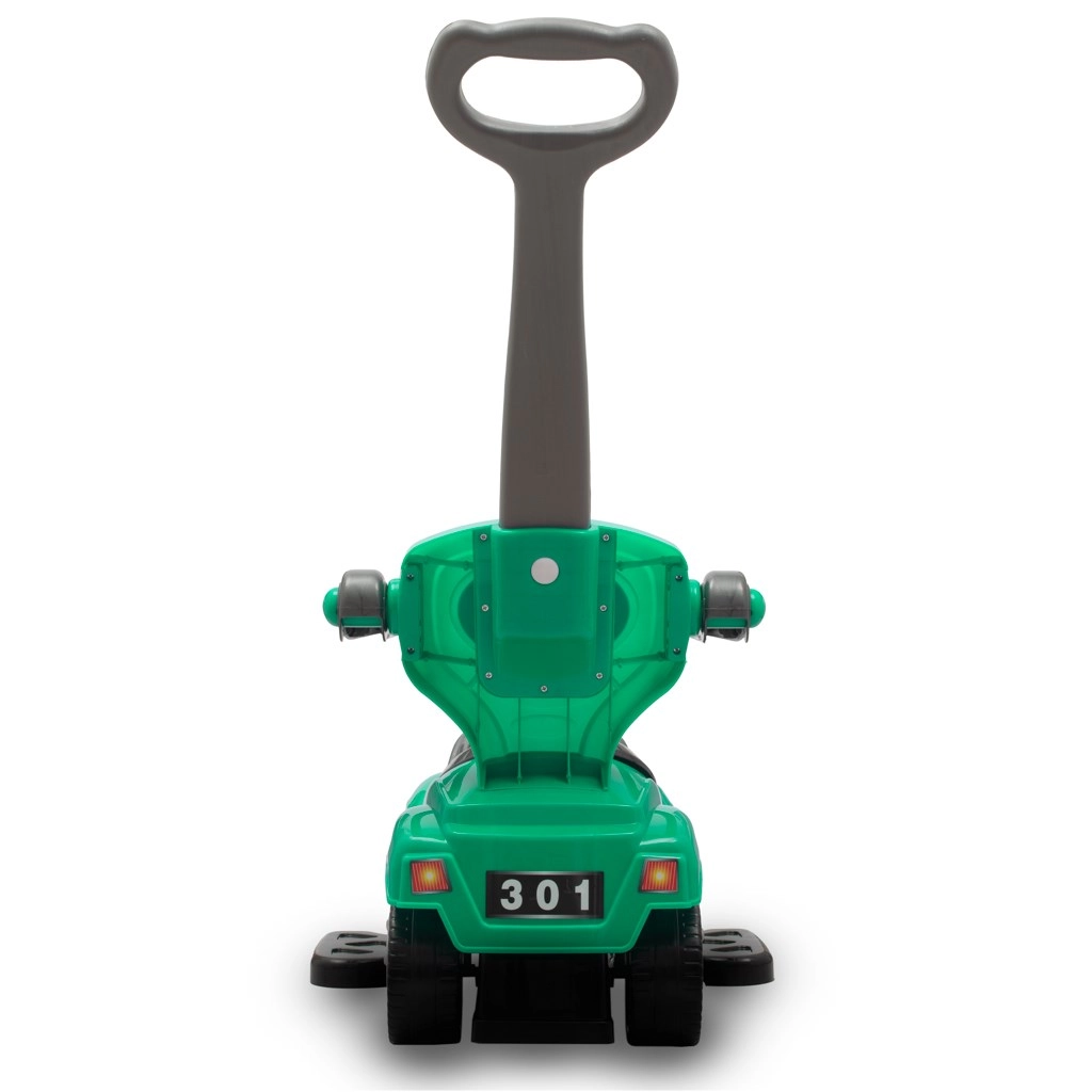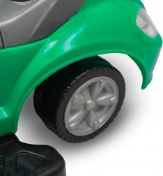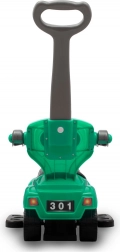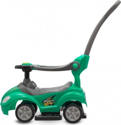 Împingătorul multifuncțional 3 în 1 BABY MIX Mega Car, în culoare verde, îmbină într-un singur produs împingătorul, vehiculul de plimbare și antemergătorul. Oferă mâner de ghidare pentru părinți, apărătoare laterale de siguranță, suporturi pentru picioare detașabile și volan muzical cu claxon. Datorită construcției stabile și spațiului de depozitare sub șezut, este ideal pentru copii de la 12 la 36 de luni.