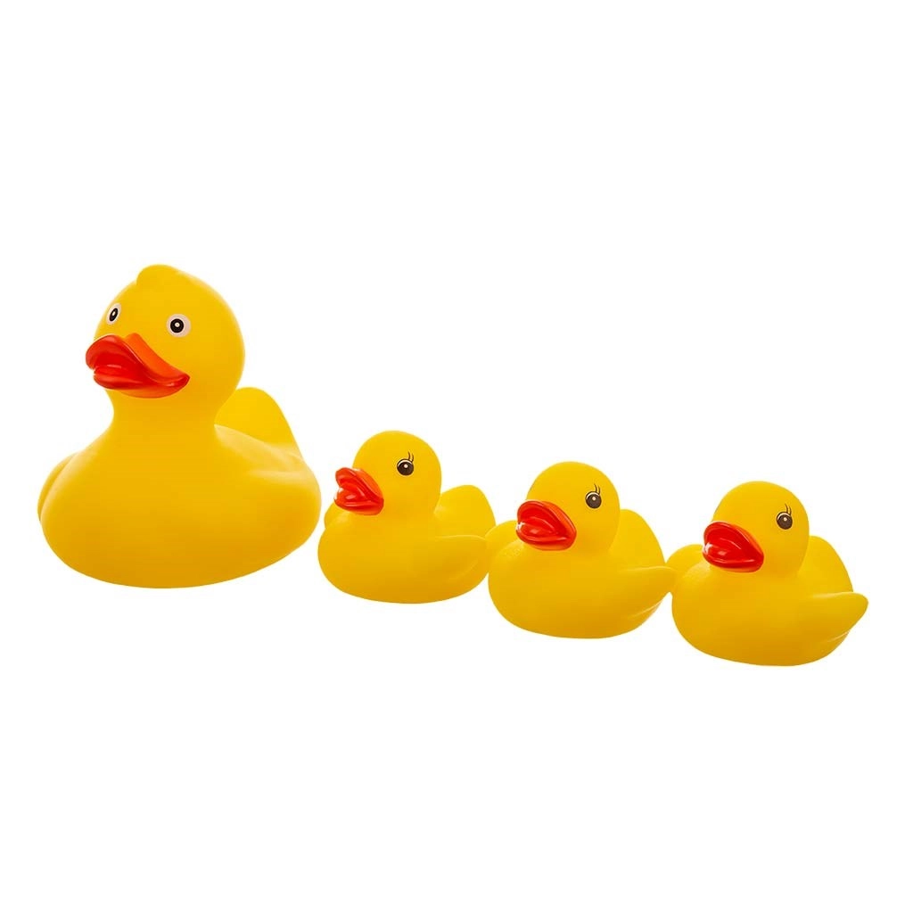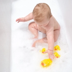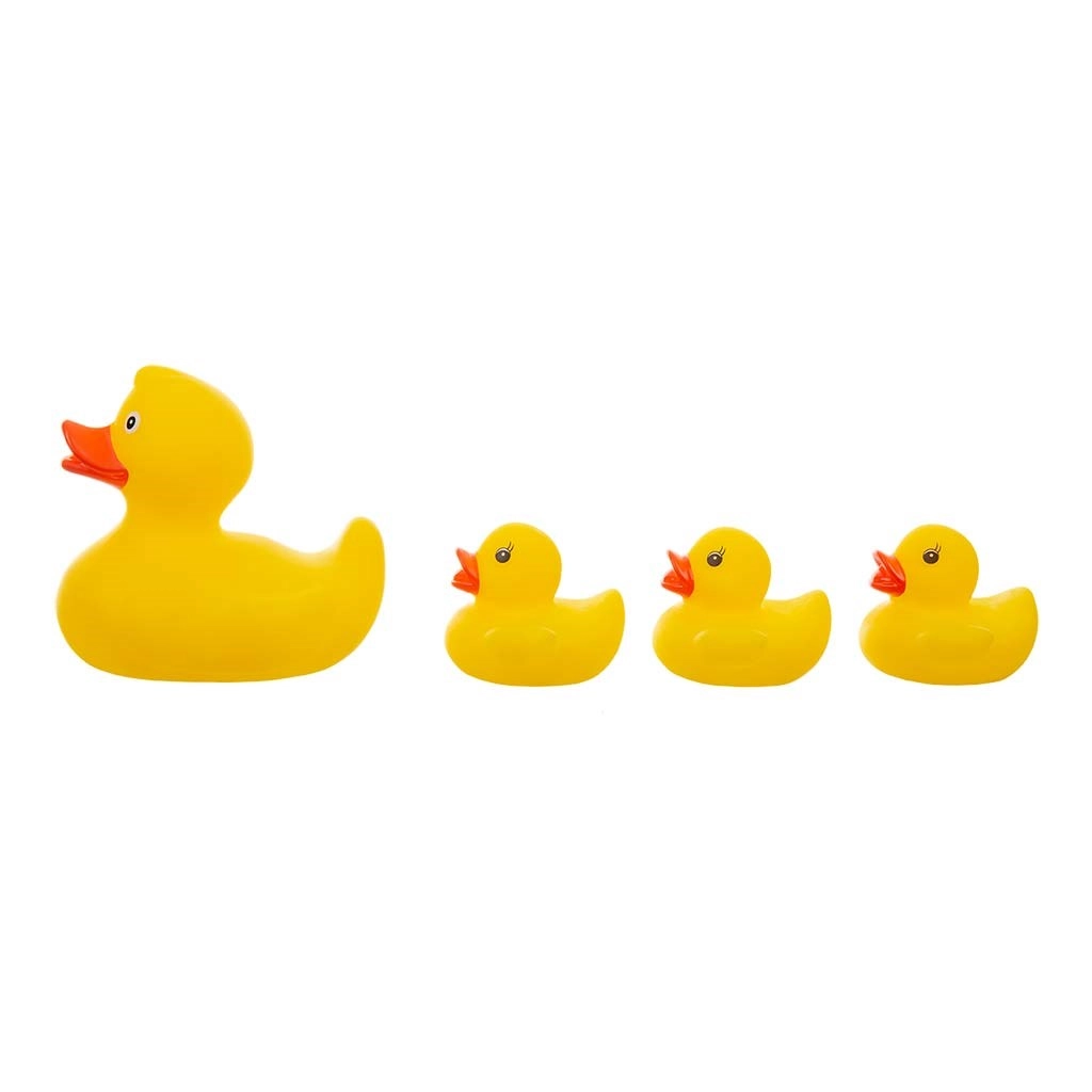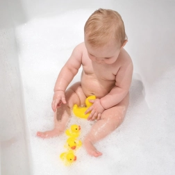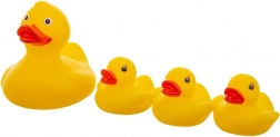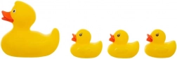 Cu această drăgălașă familie de rațe, fiecare băiță devine un moment de bucurie. Setul conține 1 rață mare și 3 rățușe mici, care plutesc și, datorită orificiului, permit stropirea cu apă. Culoarea galbenă intensă stimulează percepția vizuală, iar forma adaptată mânuțelor copiilor dezvoltă motricitatea fină.