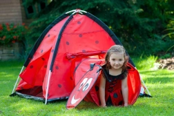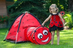 Acest cort roșu cu buline negre și tunel atașabil îi va încânta pe micii exploratori. Se montează și se strânge ușor, este ușor și portabil, fiind potrivit pentru camera copilului, terasă sau grădină. Poliesterul rezistent asigură durabilitate și întreținere facilă.