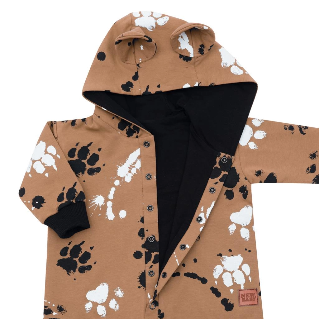 Salopeta pentru bebeluși New Baby labă, în culoare muștar, încântă prin materialul fin și neted și prin croiala confortabilă. Gluga cu urechiușe oferă un aspect adorabil, iar căptușeala din bumbac, termoizolantă, sporește confortul termic pe vreme mai răcoroasă. Datorită capselor pe toată lungimea, îmbrăcarea și schimbarea scutecului sunt rapide și fără griji.